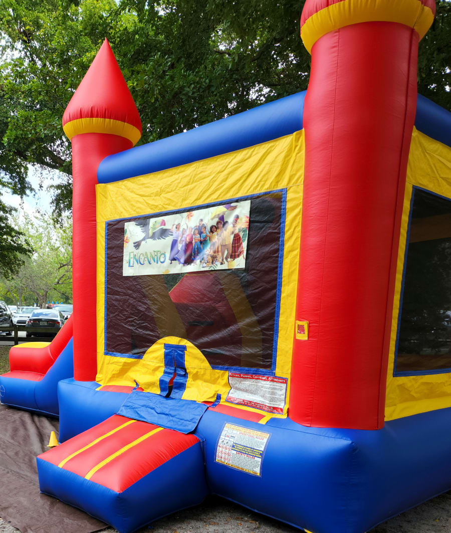 This Bounce house castle with slide is always hit for birthday parties, kids' activities, city events, it has a big slide and is unisex. The children will be entertained for hours. It can also be customized with a banner. We deliver to Hialeah, Kendal, Miami, Aventura, Doral, cutler bay, homestead, Sweetwater, Tamiami, Sunset, Miami lakes, Miami Gardens, Miramar, Pembroke pines, Hollywood, David, Weston, plantation. All our bounce house are totally disinfected. Book your castle bounce or waterslide online easy and if you have any question don't hesitate to give us a call or text on 954 647 0727 or 954 647 0726