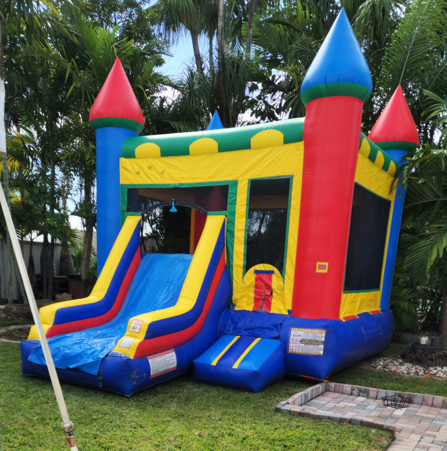Enjoy this bounce house with a slide that you can use wet/dry.