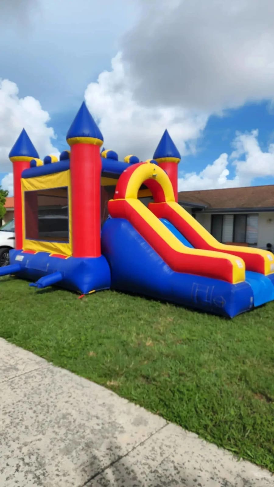 This combo unit provide the fun of a bounce house with the excitement of a slide .This Bounce house castle with slide is always hit for birthday parties, kids' activities, city events, it has a big slide and is unisex. The children will be entertained for hours. It can also be customized with a banner. We deliver to Hialeah, Kendal, Miami, Aventura, Doral, cutler bay, homestead, Sweetwater, Tamiami, Sunset, Miami lakes, Miami Gardens, Miramar, Pembroke pines, Hollywood, David, Weston, plantation. All our bounce house are totally disinfected. Book your castle bounce or waterslide online easy and if you have any question don't hesitate to give us a call or text on 954 647 0727 or 954 647 0726